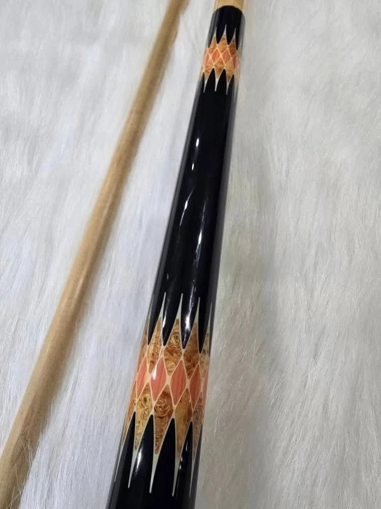* Birdseye Maple forearm/sleeve * Black urethane handle * Brass rings * i-2 shaft *McD QR joint * 6 Pink/white urethane points * 6 Sets of Pink/white urethane sleeve inlavs * Box Elder Burl/Pink/white urethane “Web” no wrap handle