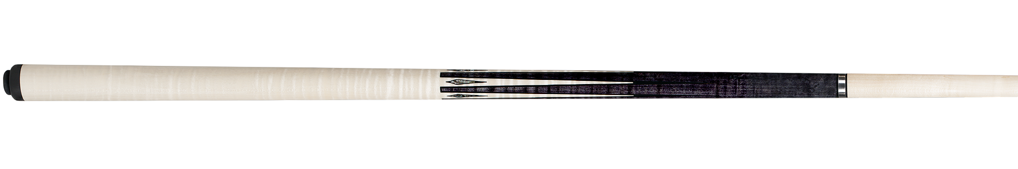 Figured maple cue with a Carbon-stained forearm. sim. Ebony framed no-stain points and handle with floating sim. Ebony framed Abalone diamonds.