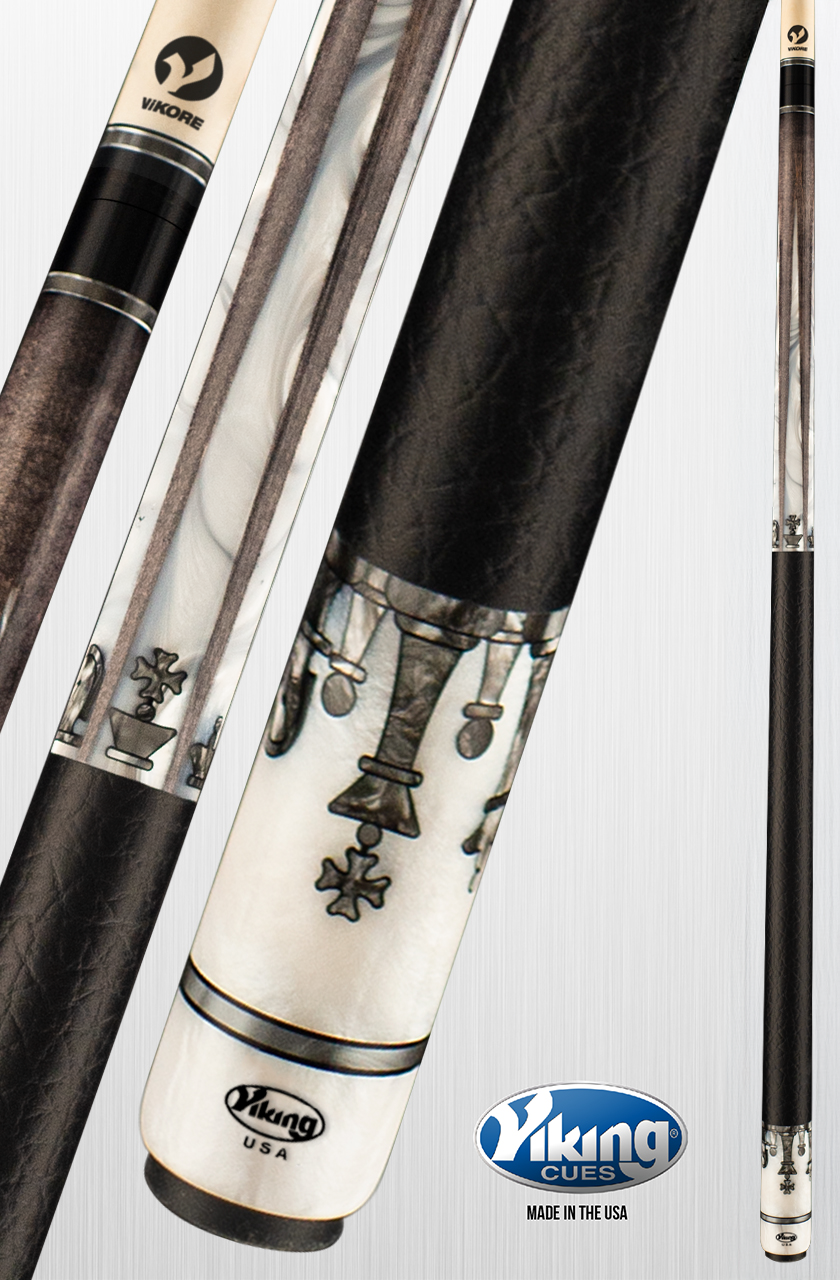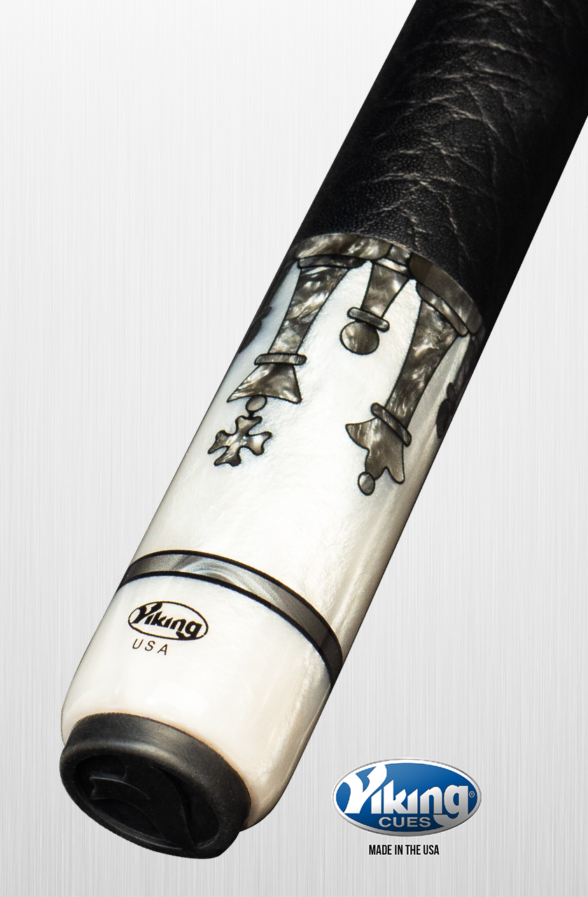 138 Smoke Premium Pearl Inlays | 5 White Premium Pearl Inlaid Points | Birdseye Maple Forearm | White Premium Pearl Butt Sleeve | Embossed Leather Wrap | Smoke Premium Pearl, Black (IMA), and White (IMA) Index Rings | Viking Quick Release Joint | Tiger Everest Laminated Tip | ViKORE Performance Shaft1